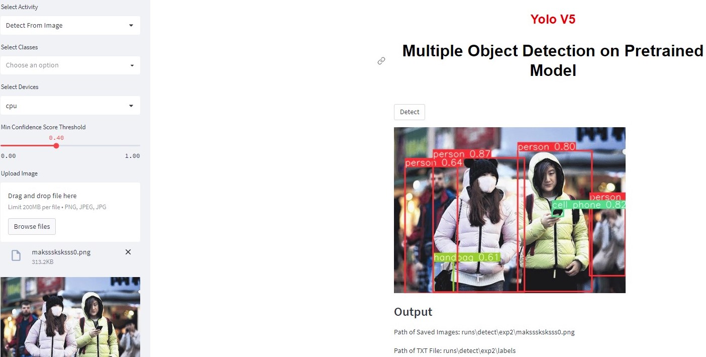 Yolo V5 | Streamlit App | Multiple Object Detection on Pretrained Model