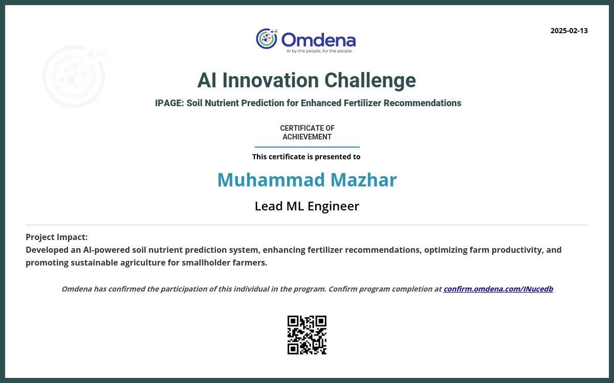 Contributed in EDA, Developed Models for SOC, Boron, Experiment Tracking using MLFlow, Zn, API using FastAPI, Streamlit App for PoC.
